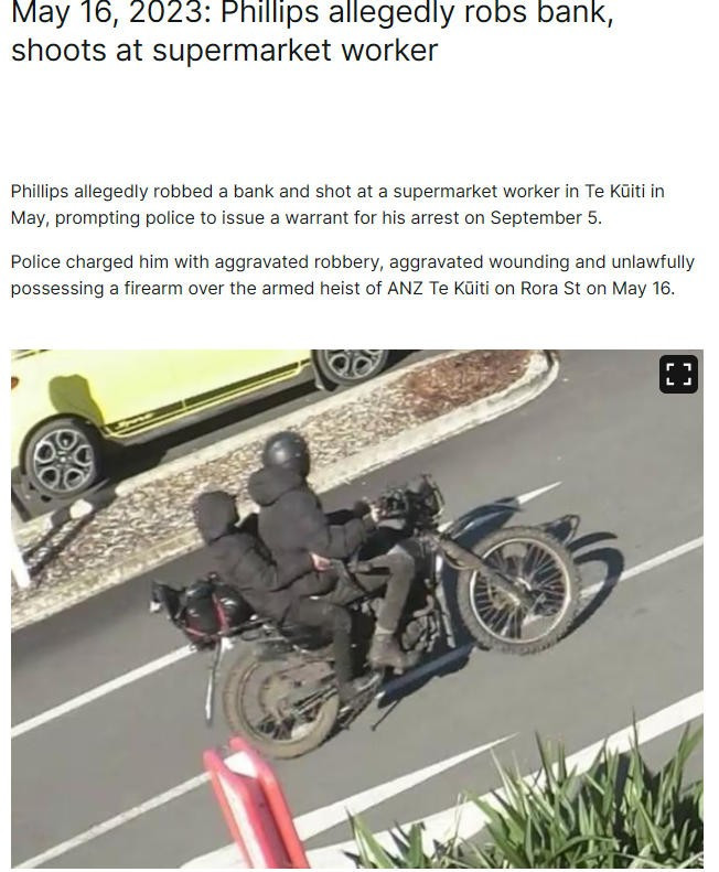 2023年5月,Phillips和另一名同伙持枪抢劫了当地某银行,据说还开枪打伤了一名超市员工。