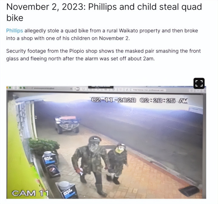 11月,Phillips干脆开始带着孩子去搞“零元购”。他偷了一辆四轮摩托,然后凌晨两点左右带娃砸碎了一家商店的玻璃,开始大肆抢劫......